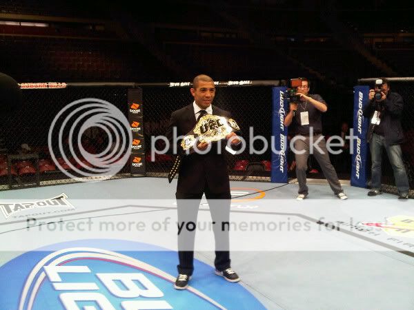 Vakar, Balandzio 29 diena, Toronto miesto Ricoh Coliseum arenoje ivyko unikali prezentacija - pirma karta UFC istorijoje, po vienu stogu Q&A sesijai susirinko visi septini organizacijos championai (norintiems, video CIA). Svarbiausia ka galime paimti is nuotraukos, tai Jose Aldo iki siol neisigijo normalios avalynes nuo pat UFC 123 (CIA). Nuotraukoje is kaires i desine: