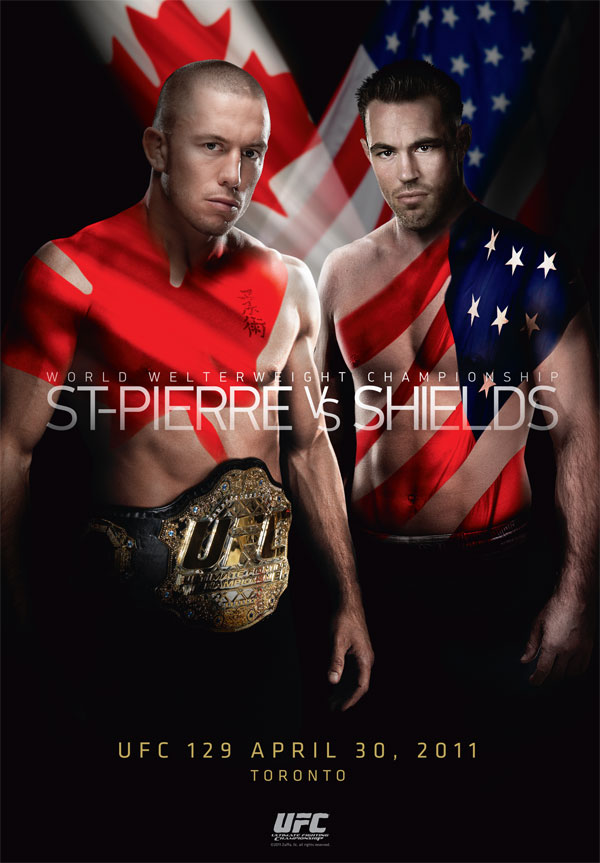 Organizacija paruose ypatinga menini plakata UFC 129: St-Pierre vs. Shields kovai.