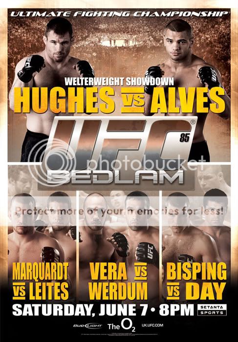 MATT HUGHES vs. THIAGO ALVES - liudnas reginis istikruju. Pacioje kovos pradzioje matome, kad tai bus nelengvas vakaras legendai, kai Hughes suvis takedownui buvo laiku pastebetas ir sustabdytas su sprawl is Thiago puses. Bent jau Matt nesieke stovetu su Alves, blaiviai ivertindamas savo sansus, ir iesko antro TD bandimo, kuris irgi nesekmingas ir Hughes belieka istraukti brazila i savo guarda. Aisku, imtininkui tai nenuostabiausia pozicija, bet vistiek geriau negu stoveti su Muay Thai specialistu. Ant nugaros Matt paragauja agresiviu Thiago GnP smugiu ir neuzlgo jie grizta i stovesena. Pagaliau Matt pasisieka gauti takedowna, bet nieko ypatingo is to jis neispesia. Tai nebuvo LnP is Hughes puses, nes jis stengesi patobulinti savo pozicija, bet, deja, taip atrode ziurovu akyse, kadangi Alves dare nuostabu darba neisleisti Matt toliau half-guardo. Brazilas vel randa kelia ant koju, bet greit veiksmas grizta ant grindu - si karta su Matt ant nugaros. Velgi keleta stipriu groun-and-pound smugiu is Thiago. Beabejo, raqundas 10-9 Alves. Na antras raundas buvo trumpas, su eiliniu nesekmingu TD bandimu is Hughes, uz kurio seke ta flying knee ir galutiniai GnP smugiai. Po kovos Alves praso №1 pretendento kedes: "I was a good boy". WTF? Vaikeli, pries trys kovas tu buvai pagautas uz Spironolactone vartojima, tu per plauka tilpai i norma (apsinuogines) pries Lytle kova, o i si matcha tu atejai bendrai 4 svarais virs ribos, parodidamas savo pagarba legendai. Ir sis zmogus gavo KOTN bonusa?! Jam kaip minimum reikia dar vienos kovos, kur jis bent iroditu, kad gali tilpti i 170 lbs lubus + isitvirtinti pretendento pozicijoje. Kaip sakiau, as nebuviau pries Alves/Swick. Busiu atviras, man jis nepatinka, bet as tikios, kad jis visgi gaus kova pries Goerges St. Pierre, kad pastarasis imustu jam proto.