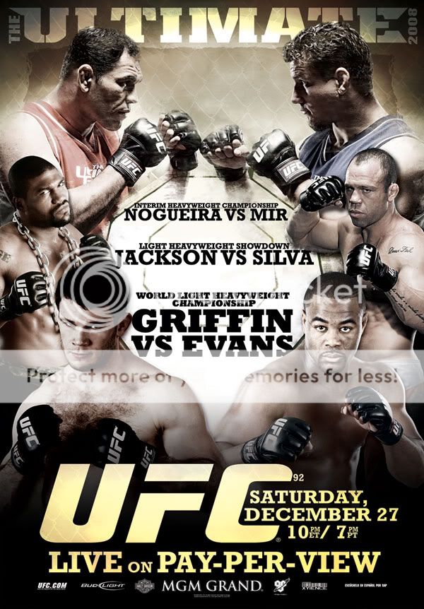 Bendrai paemus UFC 92 is tikruju buvo labai pavykes renginys,puikiai uzbaigiantis sius metus.Beje kas mate Pat Barry ir Dan Evensen kova dar karta gali isitikinti kokia didele zala gali padaryti low-kick'ai.