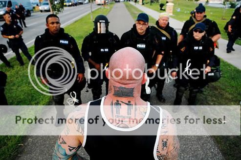 Pereinam pries Cormier isbandimo. Man visada patikdavo Monson persona, nes jis turi tokio gero zmogaus akys, bet likusi jo isvaizda sako that's a bad, bad man. Mauro speja pasakyti "He dosn't believe in bringing down the goverment" ir ta pacia akimirka mes ziurime i Jeff, tepama vazelinu su "Destroy Authority" tatuiruote prie kaklo
