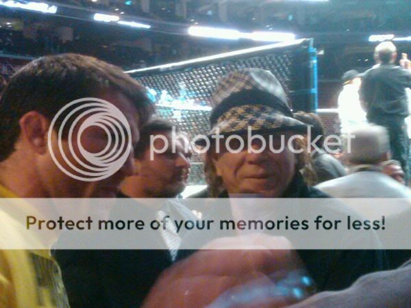 Pries main eventa mums parodo zvaigzdes auditorijoje. Gerai, kodel cia Mickey Rourk visiems yra aisku - zmogus tiesiog turejo paimti nuotrauka su The Most Interesting Man in the World (a.k.a. Chael Sonnen):Jei rimtai, tai Mickey yra vienas mano megiamu aktoriu (ypac sis post-nesekmingos plastines chirurgijos S.O.B.), taigi man malonu daznai matyti ji visokiausiuose MMA renginiuose: UFC (CIA), Strikeforce (CIA) ir net Bellator (CIA). Tai tik dar karta patvirtina mano hipoteze, kad Zuffa pritraukia viska, kas man patinka